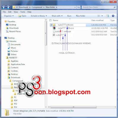 3. Extracklah File "rudie777 software" sehingga menghasilkan 3 buah File.